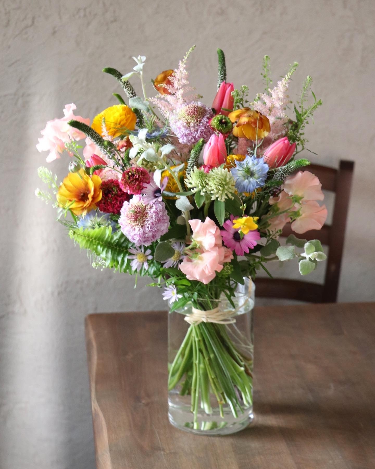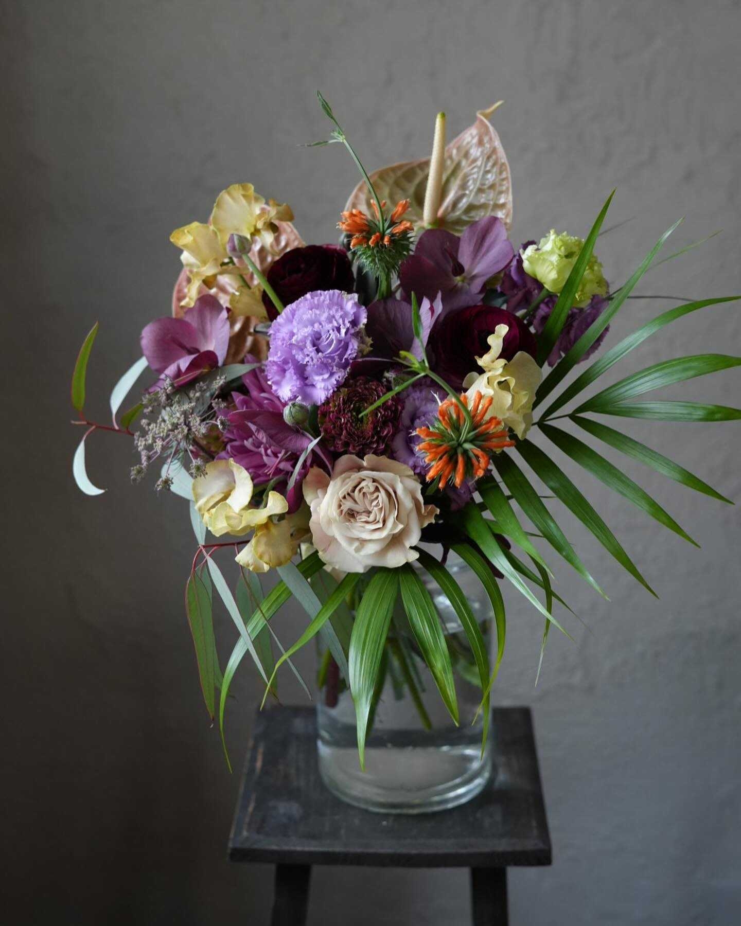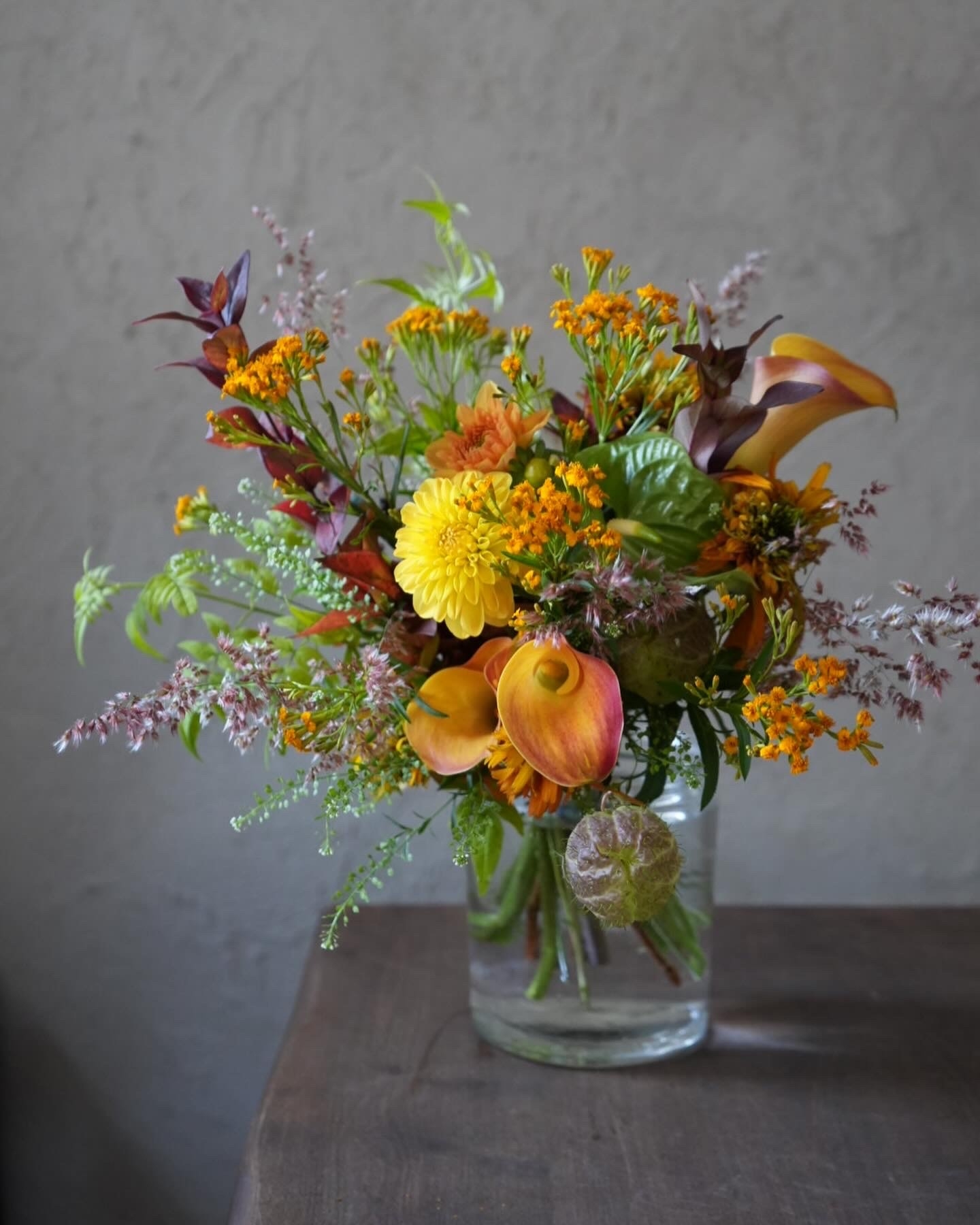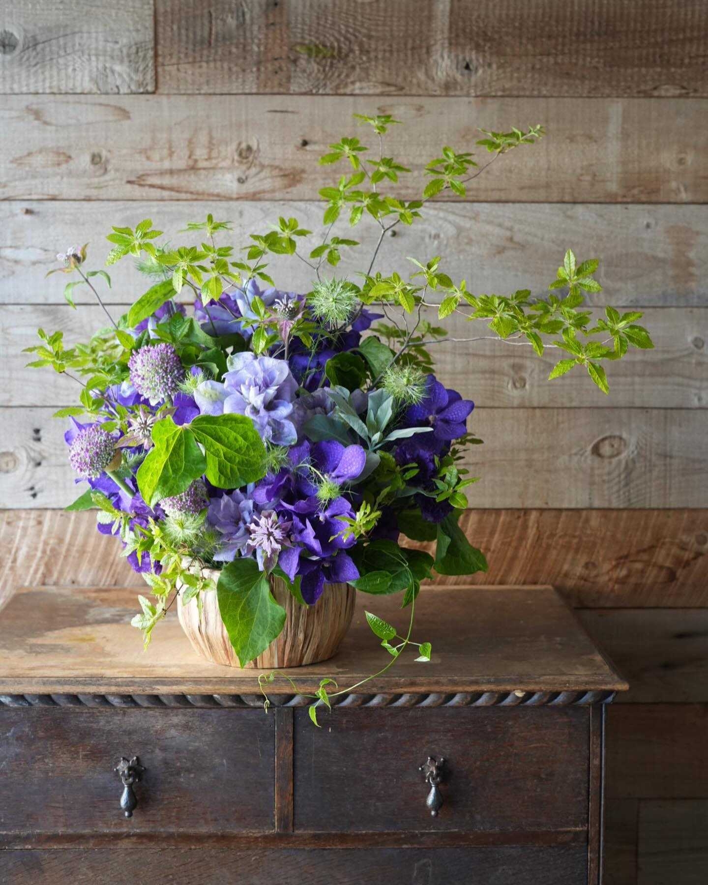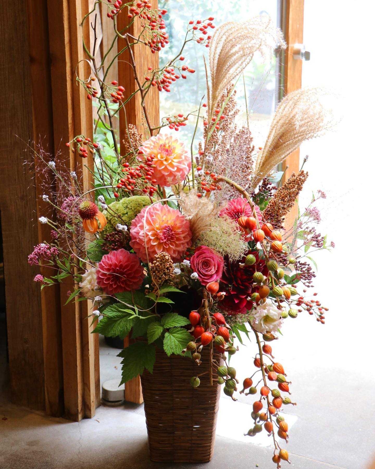 当店では、季節の旬の木花を用いて、おまかせで木花を包ませて頂いております。サイズ指定と色等のご要望は受け付けておりますが、その他の詳細なデザインや花材の選定は、当店のフローリストにおまかせください。