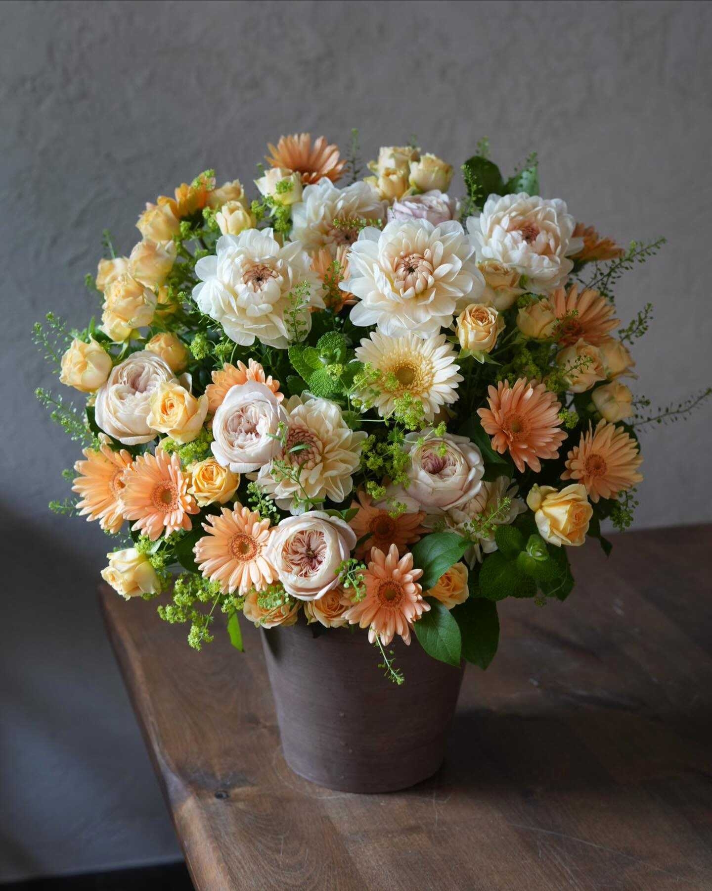 当店では、厳選した新鮮な花材を使用し、一つ一つ心を込めてお作りしております。商品の品質には万全を期しておりますが、自然のもののため、若干の個体差が生じる場合がございます。