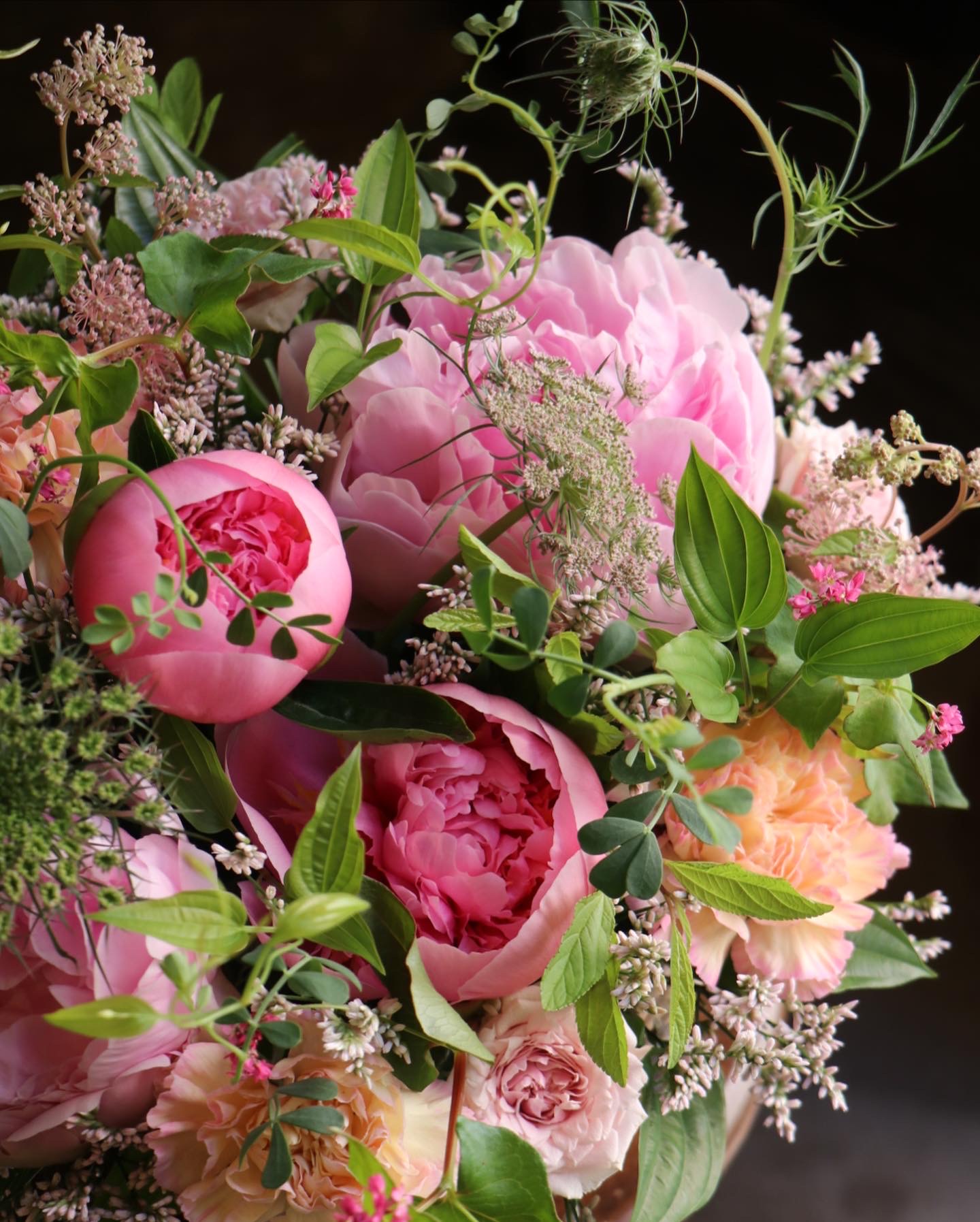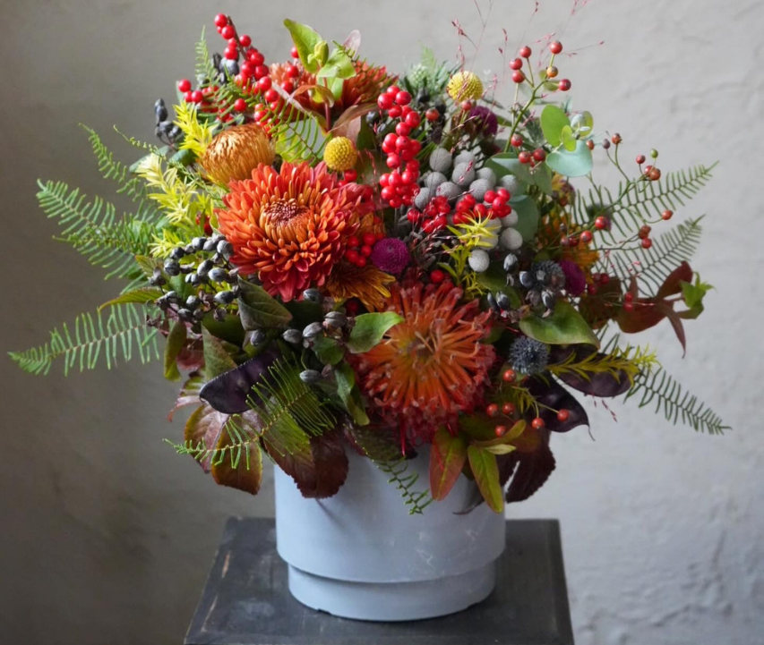 当店では、季節の旬の木花を用いて、おまかせで木花を包ませて頂いております。サイズ指定と色等のご要望は受け付けておりますが、その他の詳細なデザインや花材の選定は、当店のフローリストにおまかせください。